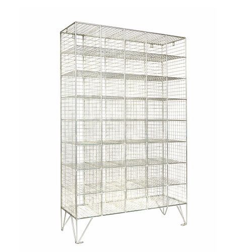 12-40 cubes, suitable for visibly storing smaller items, such as magazines or PPE. The open-fronted design allows people to access the contents quickly and efficiently. Manufactured from 25x25x2.5mm steel welded mesh on 8mm round bar frame. The 150mm integral legs can be securely fixed to the floor. Finish: bright zinc plated with a clear coat of lacquer.
