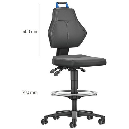 | Product Name | Workshop chair, With armrest: no, Type of leg: Rollers, Seating material: Polyurethane, Seat model: High |