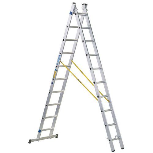 2-part D-rung combination ladder usable as a swingback stepladder or an extension ladder.