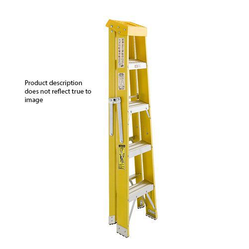 Fiberglass swingback step with double riveted aluminium treads, ideal for electrical works.