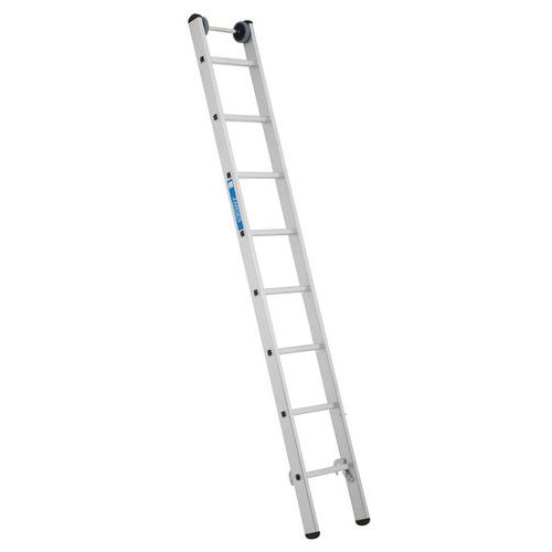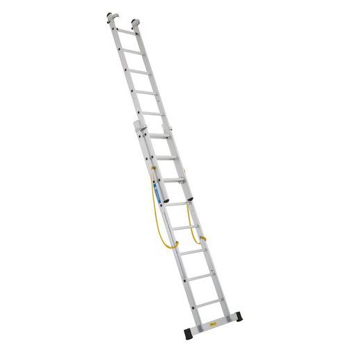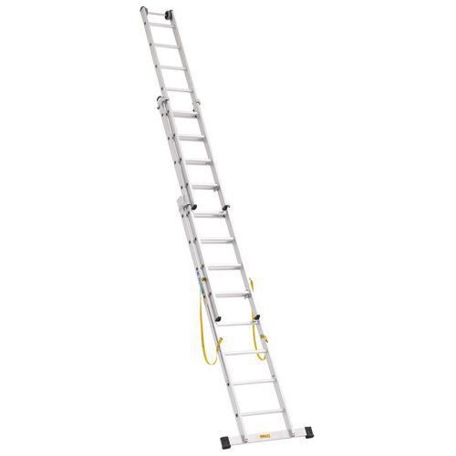 Versatile 3-part Skymaster ladder with wall wheels on upper ladder and stabiliser bar, designed for...