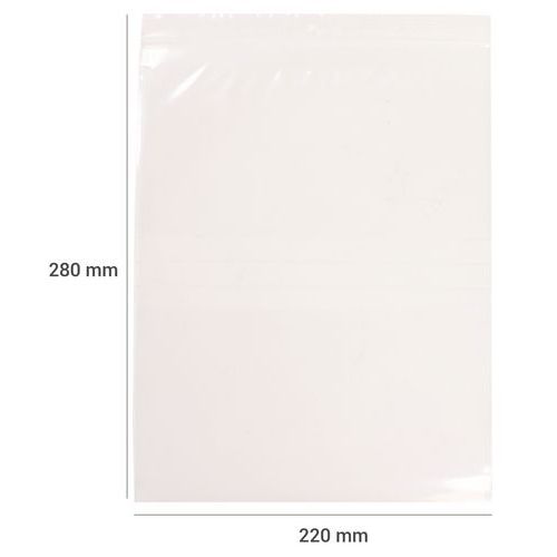 | Product Name | Ziplock bags, Thickness: 100 µm, Material: Polyethylene, Height: 280 mm, Width: 220 mm, Colour: Clear |